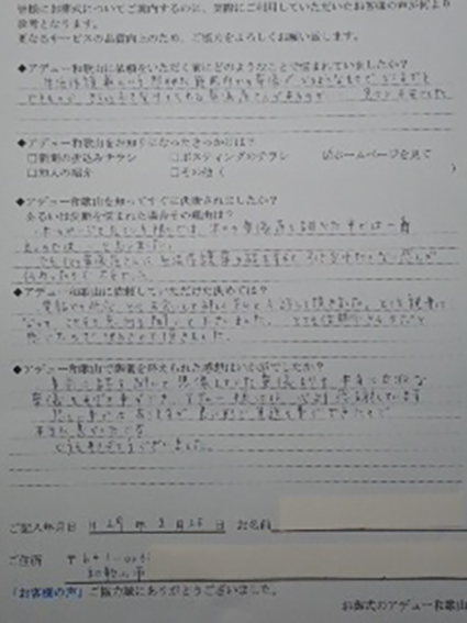 ◆アデュー和歌山に依頼していただけた決めては?