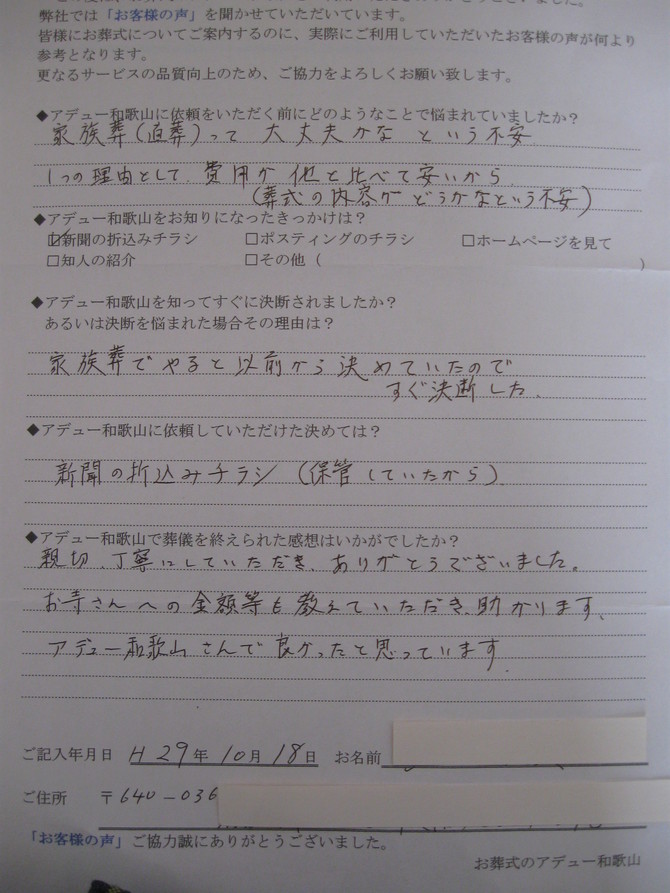 ◆アデュー和歌山で葬儀を終えられた感想はいかがでしたか?