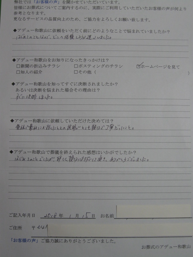 ◆アデュー和歌山で葬儀を終えられた感想はいかがでしたか?