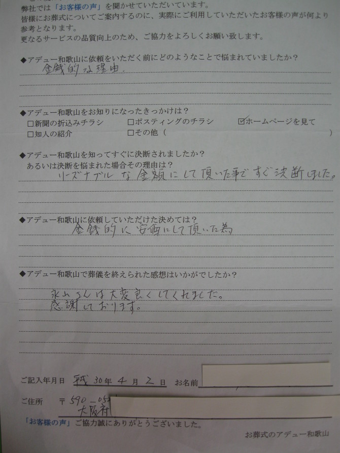 ◆アデュー和歌山で葬儀を終えられた感想はいかがでしたか?