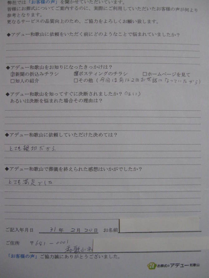 ◆アデュー和歌山で葬儀を終えられた感想はいかがでしたか?