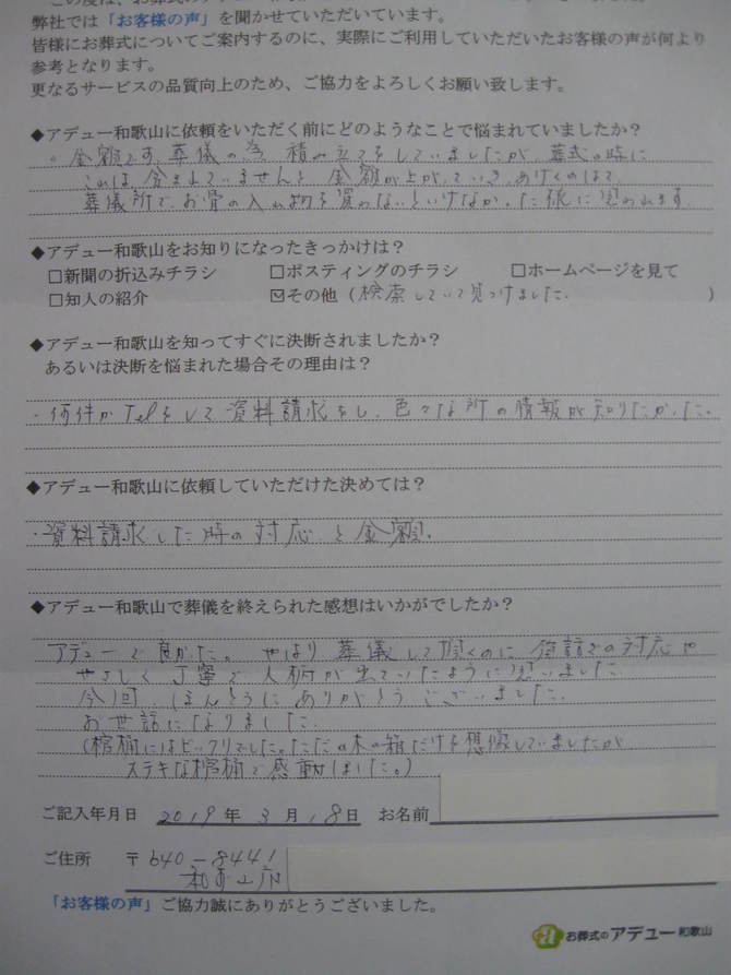 ◆アデュー和歌山で葬儀を終えられた感想はいかがでしたか?