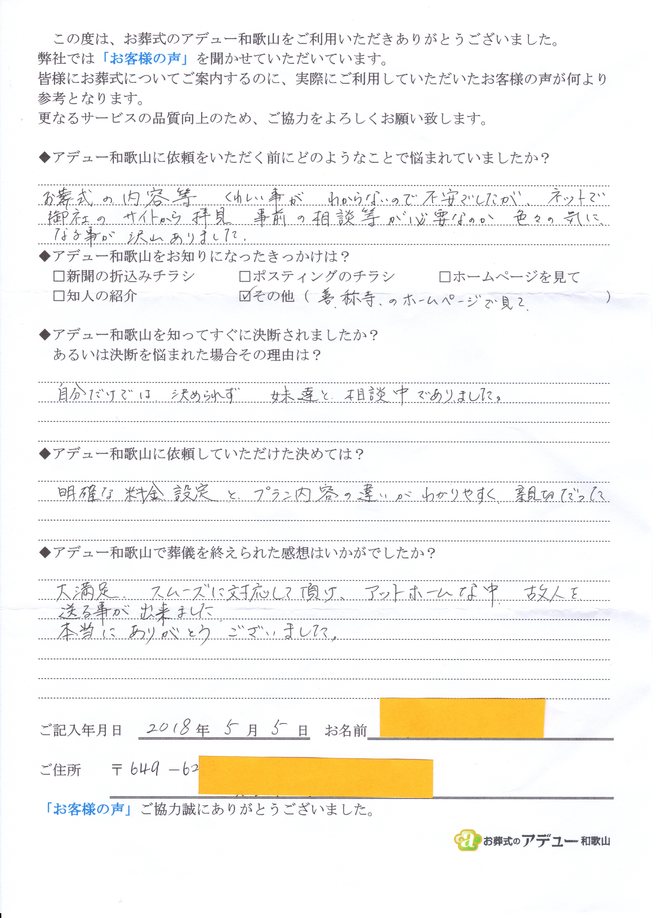 ◆アデュー和歌山で葬儀を終えられた感想はいかがでしたか?
